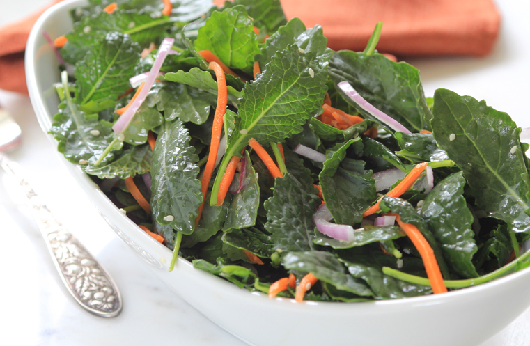 Baby Kale Salad with Peach Tea and Sesame Dressing