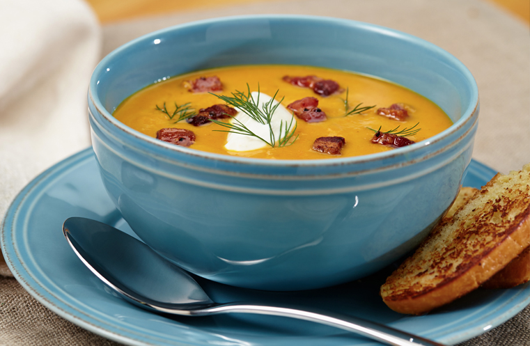 By Nick Stellino. The light creamy texture of this soup is a truly delectable experience to relish. Augment the soup’s hearty flavour by sprinkling pieces of fresh fennel and browned bacon over drizzled sour cream.