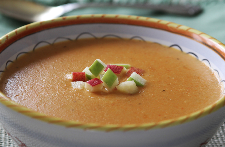 2. Transfer the soup to a blender and puree. Return to the saucepan and stir in the heavy cream and mustard and heat over medium until hot, about 3-4 minutes. Add the cheese and salt and stir until melted and smooth. Divide among bowls and garnish with chopped apple.