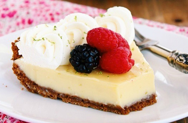- Once pie has cooled, refrigerate till ready to serve. Garnish with whipped cream and fresh berries.