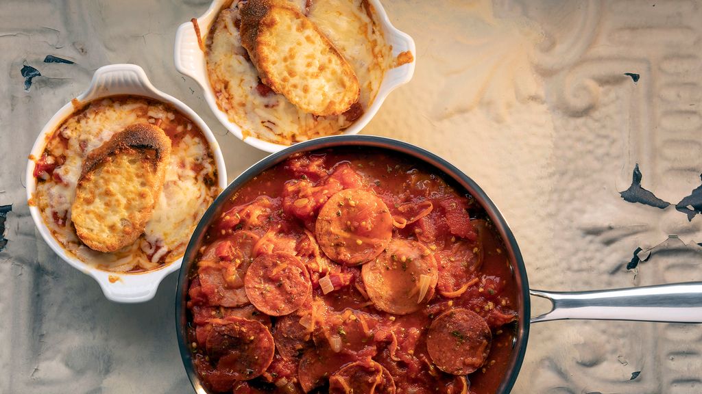 You can easily fit the kid-friendly flavours of a pizza into a soup bowl. This easy-to-make soup is always a hit at our table.