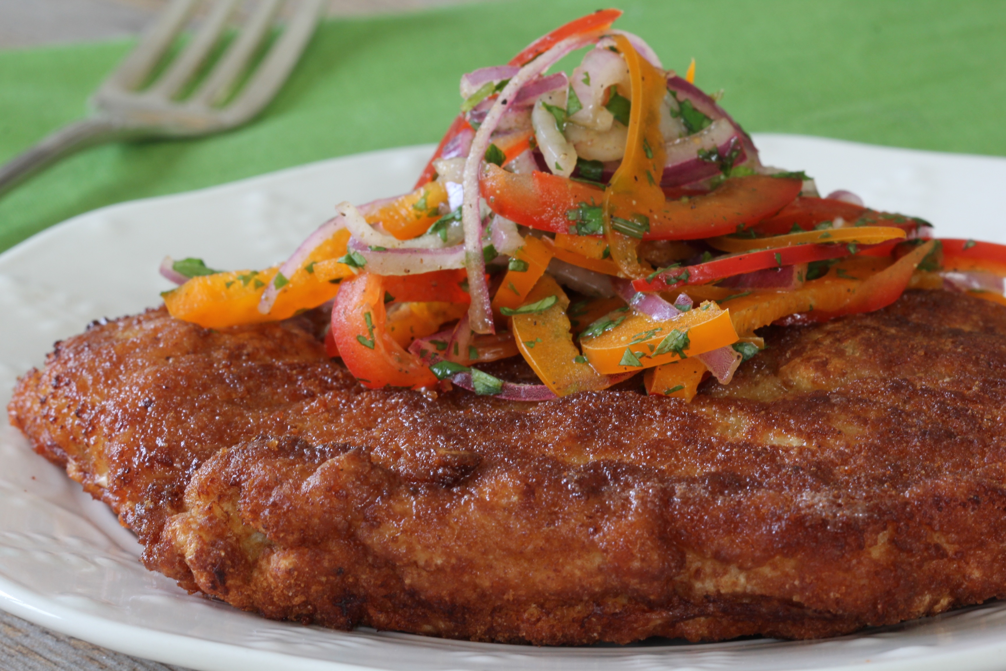 By Marge Perry & David Bonom. This Peruvian salsa of onions, sweet peppers and bright lime juice is served on many meats and fish, but is especially good against the crunchy crust and tender, juicy meat of this fried pork chop.