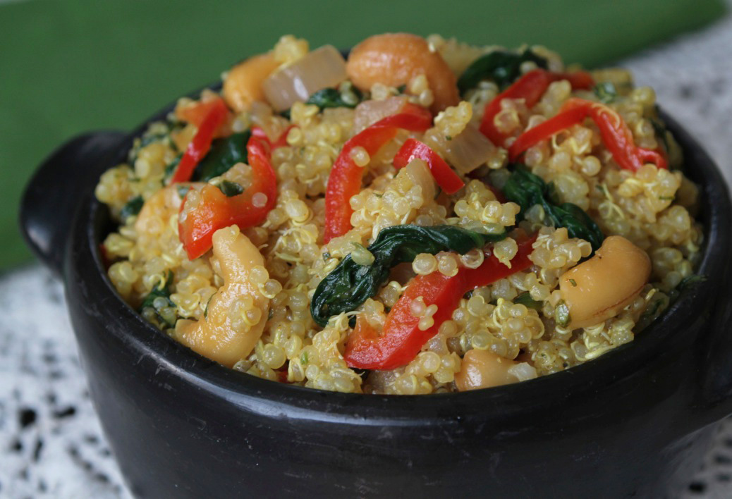 Quinoa with Cashews, Spinach and a Curried Vinaigrette