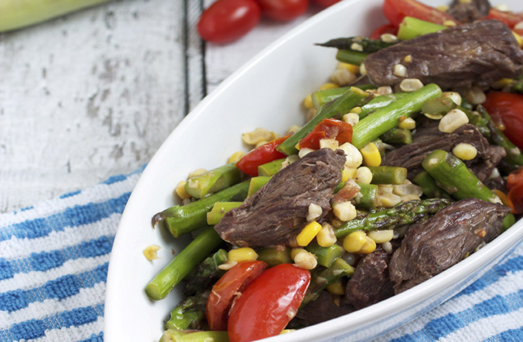 Steak Stir-Fry with Asparagus, Corn and Tomatoes