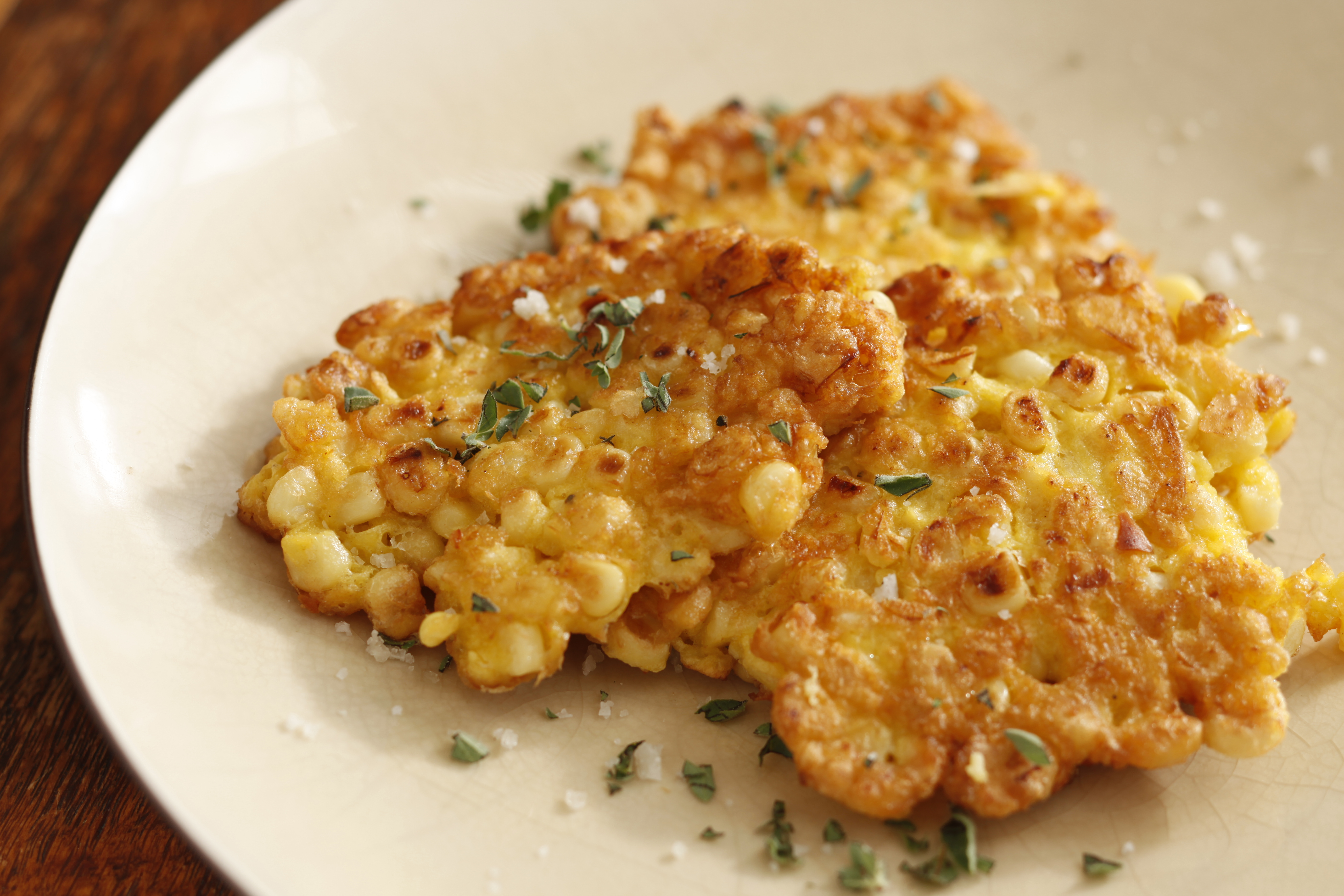 - When it is hot, drop the corn mixture by heaping teaspoons into the oil, about 1-inch apart. Press down gently with the back of a wooden spoon and fry until golden brown, about 2 minutes. Turn and fry the other side, about 1 minute.
