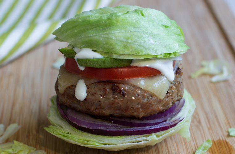 By Jill Hough, With crunchy iceberg lettuce as the bun around a turkey patty plus tomato, onion, avocado, cheese, and ranch sauce, this burger is low on carbs but high in flavour.