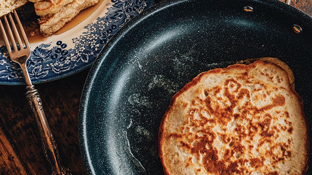 Every kitchen needs a gold-standard pancake recipe. These are loaded with whole grain goodness and regularly soak up maple syrup on my family’s table. They’re also a breeze to make in a Meyer non-stick frying pan!